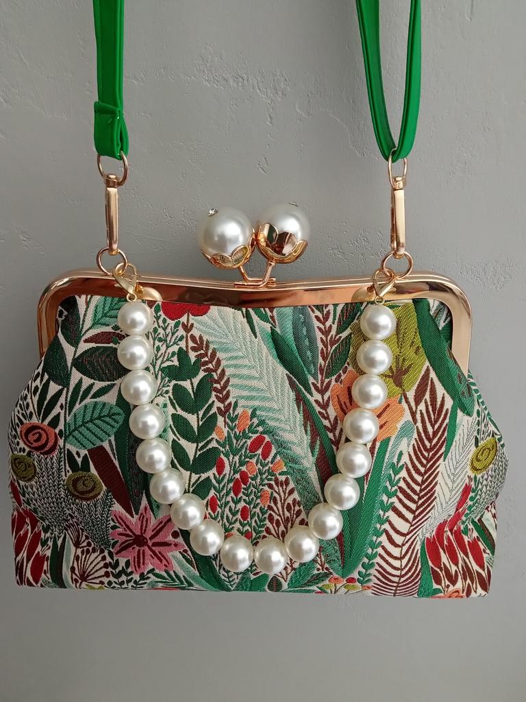 Elegant Women Green Pink Shoulder Bags Canvas Shell Clips Fashion Lady Pearls Handbag Daily Retro All-match Chain Crossbody Bags — buy online with free worldwide shipping!