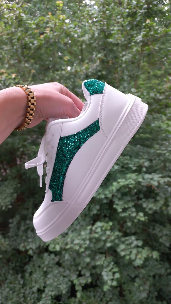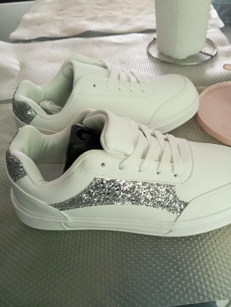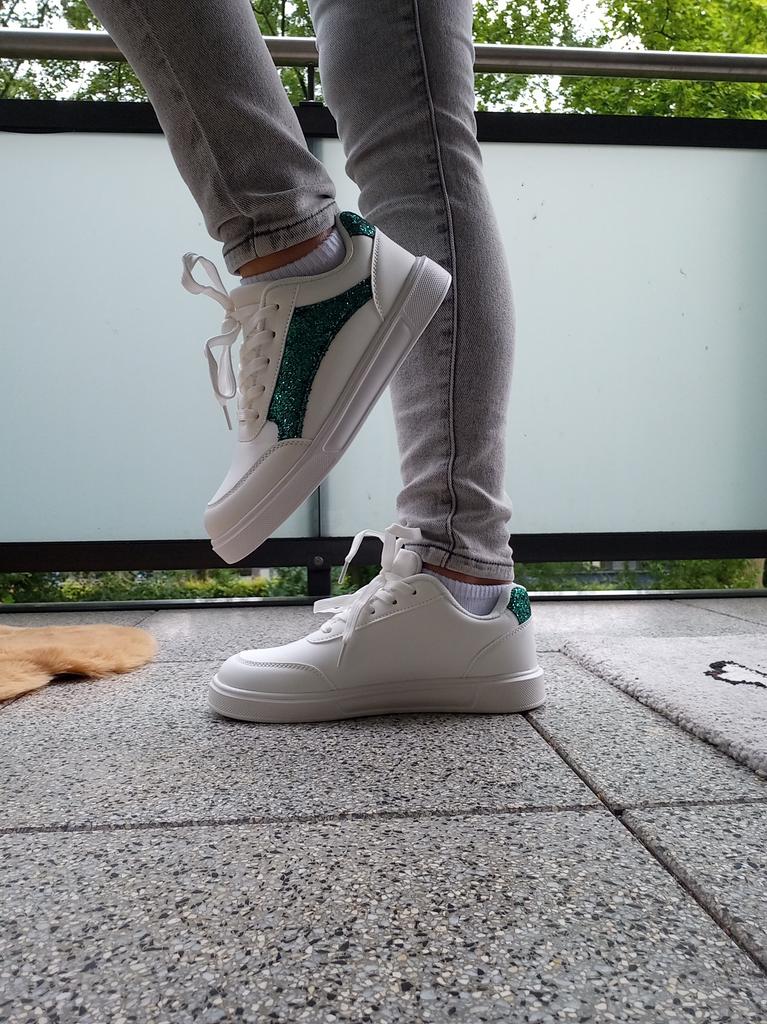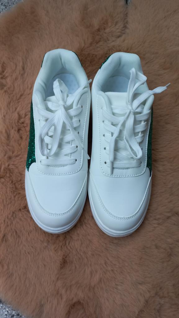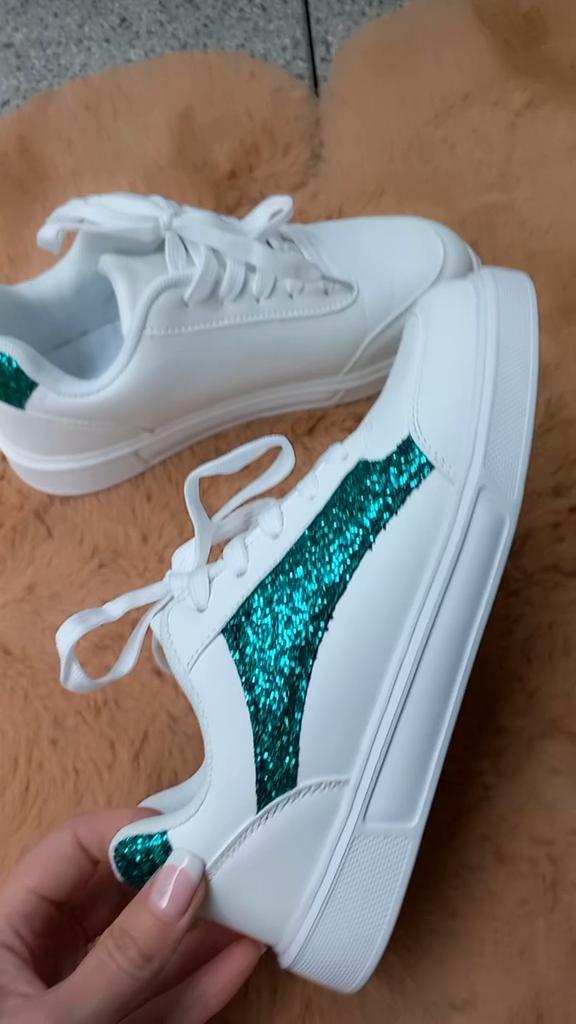 Beautiful sneakers for women 👟! Delivery time: 🚚🚛✈️✈️✈️22 days to Germany. Scope of delivery: The delivery includes a pair of beautiful sports shoes in the appropriate size and color. Schune is available in 3 different colors to choose from . The product is available in sizes from 35 to 42 . I ordered the shoes in size 38 in green/white and they fit me perfectly. The shoes run small, so you have to order a size larger. I particularly like the glittery green pattern, namely the sequins 👍👍. The color of the shoes is exactly as shown.👍👍👍👌👌👌❗️ I normally wear size 37 shoes. My foot length is 23.8 cm. These 👟are ideal for me👍! They are not particularly heavy and super comfortable, seem to be well made and do not have an unpleasant chemical smell. The product is ideal for everyday wear. ✅️❗️🔝🔝🔝. Summary: Very nice 👟, you have to order a size larger. Thank you joom and the seller!😘😘🙏 5 stars 🌟 🌟 🌟🌟🌟