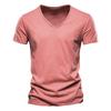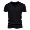 Summer Men Top Tee Solid Color Bamboo Cotton V-neck Short Sleeve T-shirt Pure Cotton Men's Clothing