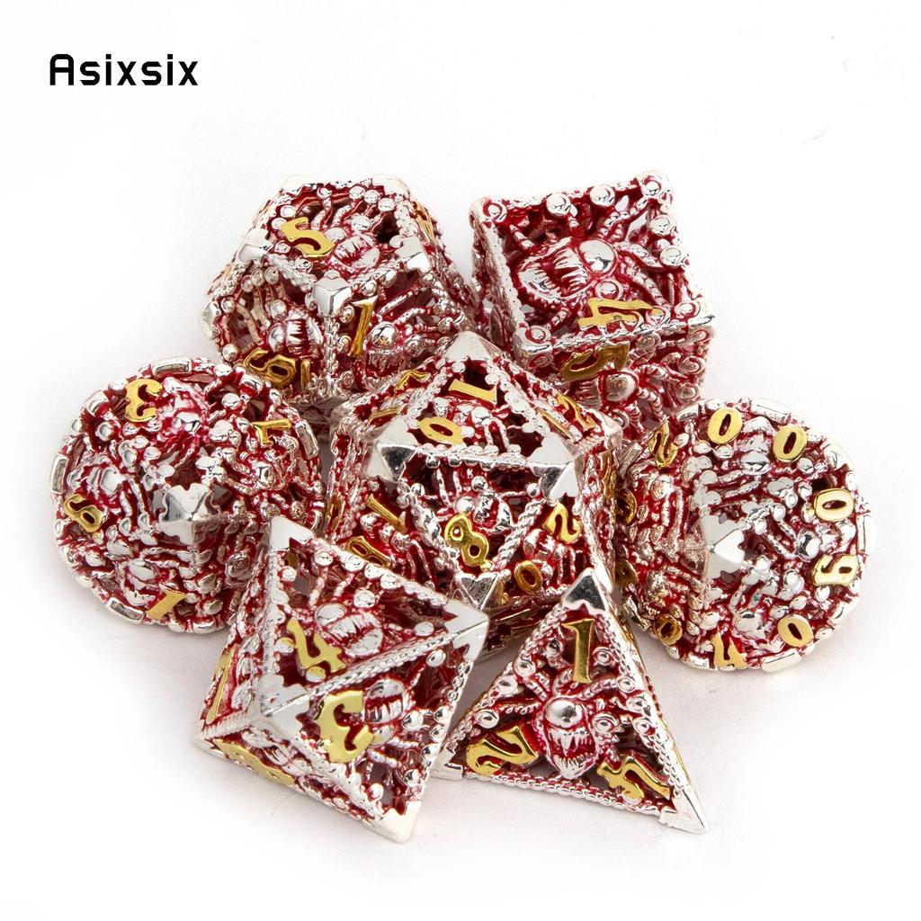 7 Pcs Silver Red Octopus Metal Dice Hollow Metal Polyhedral Dice Set Suitable for Role-Playing RPG Board Game Card Game — buy online with free worldwide shipping!