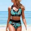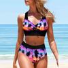 Women's Halter Pink Bow Print Bikini Tankini Swimsuit