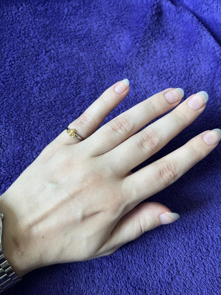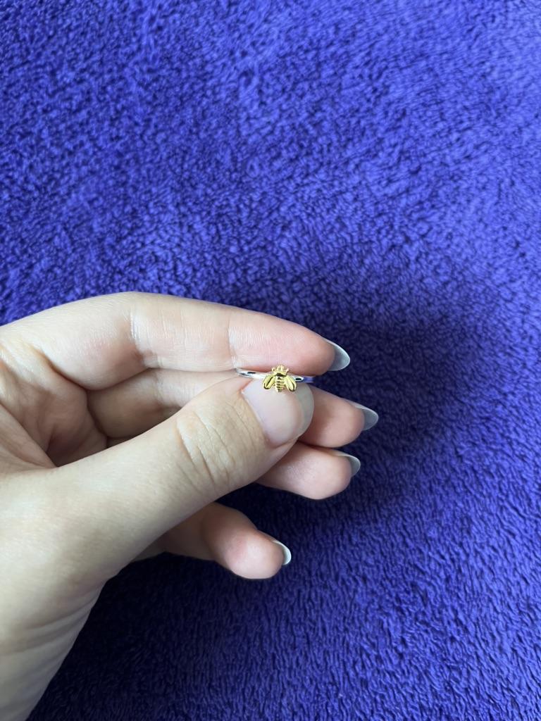 Very cute ring. 🔥👍 A small, meticulously detailed fly or bee, made of yellow metal on a ring of white metal.