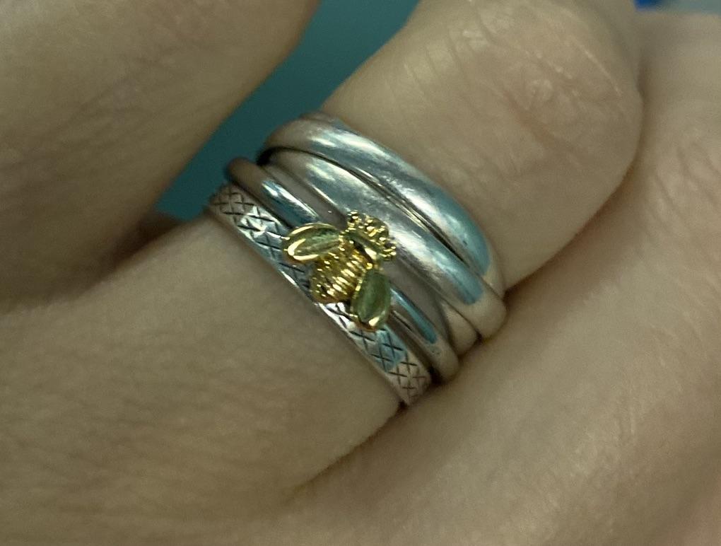 Simple Tiny Silver Bee Ring Gold Hammered Band Stacking Rings Wedding Anniversary Jewelry Size 6-10 — buy online with free worldwide shipping!