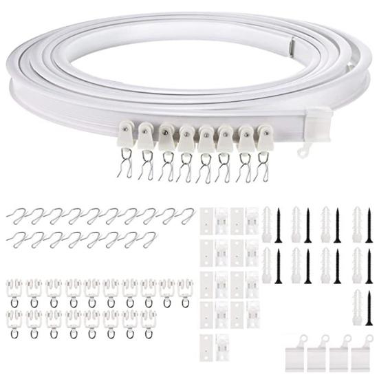 Introducing our high-quality curtain accessories! Designed for smooth sliding and a stronger bite force, these accessories ensure a firm grip on your curtains, preventing them from falling off. With a strong load-bearing capacity, they are perfect for heavier curtains. Made of premium PVC and embedded steel panels, they can be flexibly bent and sheared to fit any room layout, including arched, L-shaped, and U-shaped windows, without cracking. Unlike other ceiling curtain tracks, our product comes with both ceiling and wall mounting brackets, providing convenience for daily use. Save time and effort with our easy installation process. For curved curtain tracks, we recommend bending in reverse at the crease and straightening the system for optimal performance. This versatile curtain track can be used as a room divider, RV curtain track, hospital curtain track system, and more. It is also great for bed partitions, window treatments, shower curtains in trailers, campers, and RVs. Maximize your space utilization and instantly protect your privacy with our flexible curtain accessories!