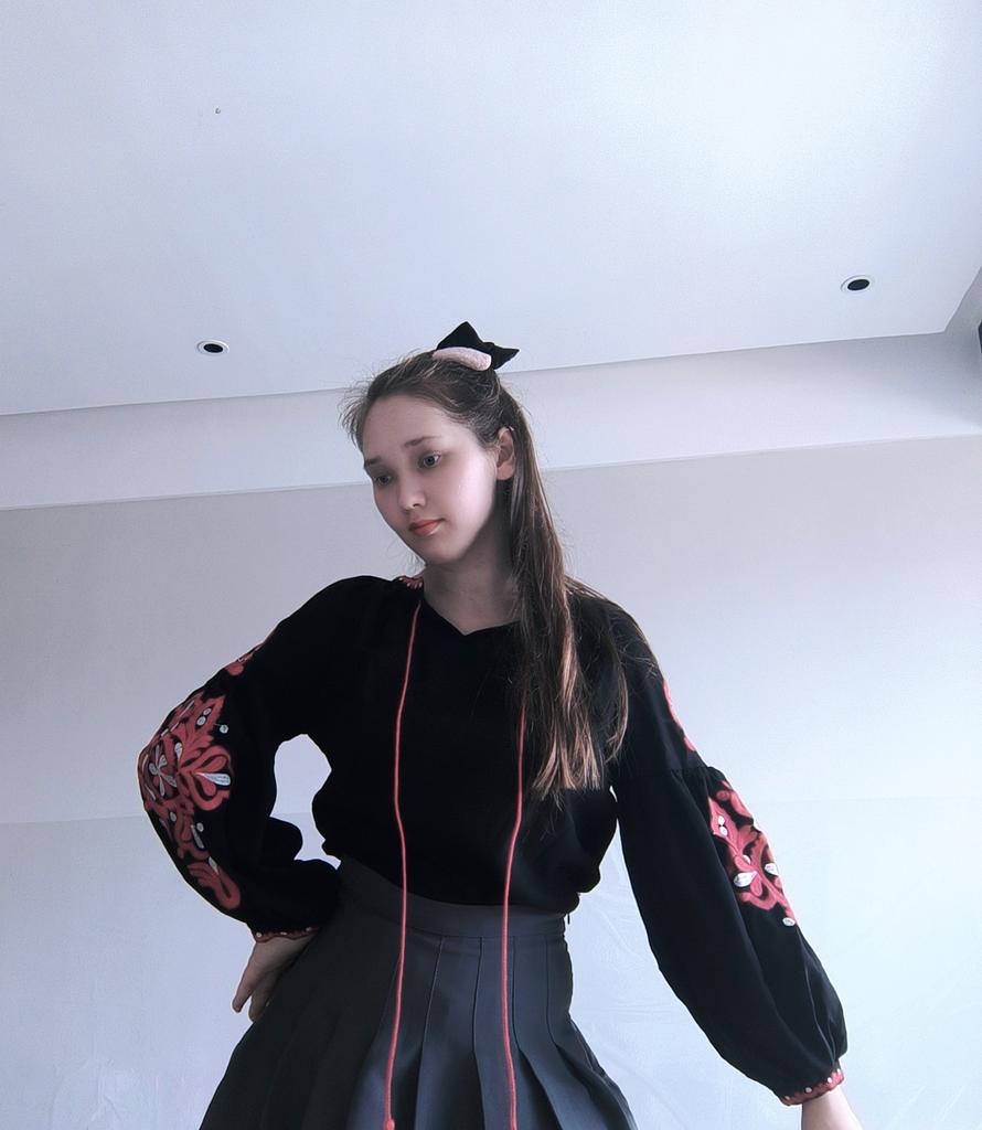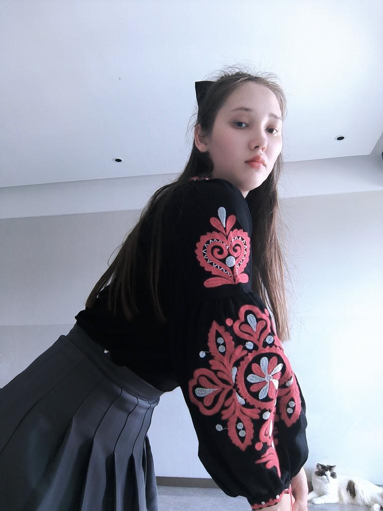 Very pretty blouse with exquisite red embroidery floral design adorning the full sleeves!The product received as the image. The product quality is so good and breathable, the fabric is very soft. There is no smell on this fabric. I think the style is a little loose so it is more beautiful to put waistcoat together an outfit. It is great for spring and summer!!!