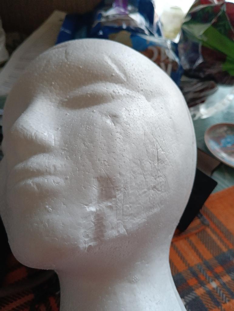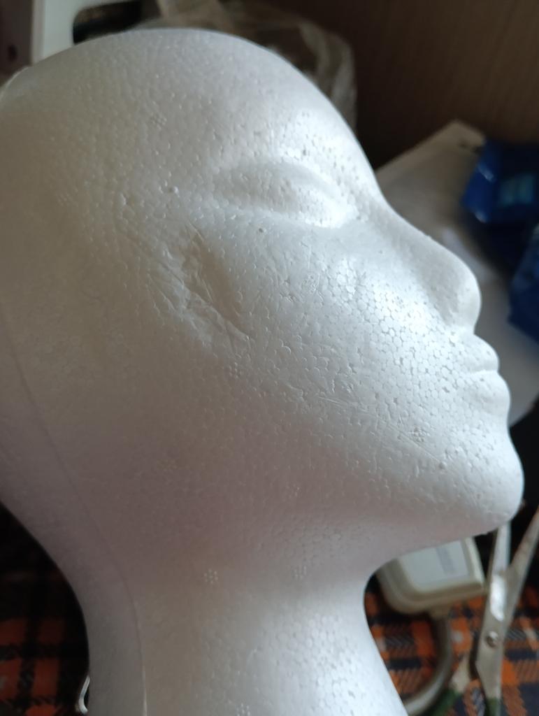 The mannequin head arrived all crumpled. There's nothing left to do but throw it away.