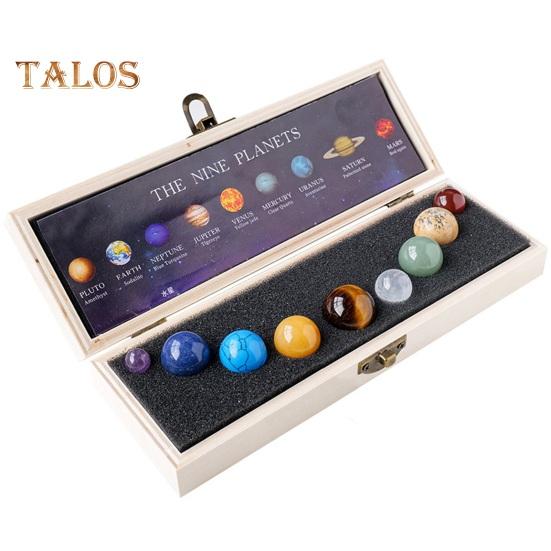Faux Crystal 9 Planets Ball Solar Sun System Rock with Wooden Box Realistic Looking Quartz Stones Beads Desktop