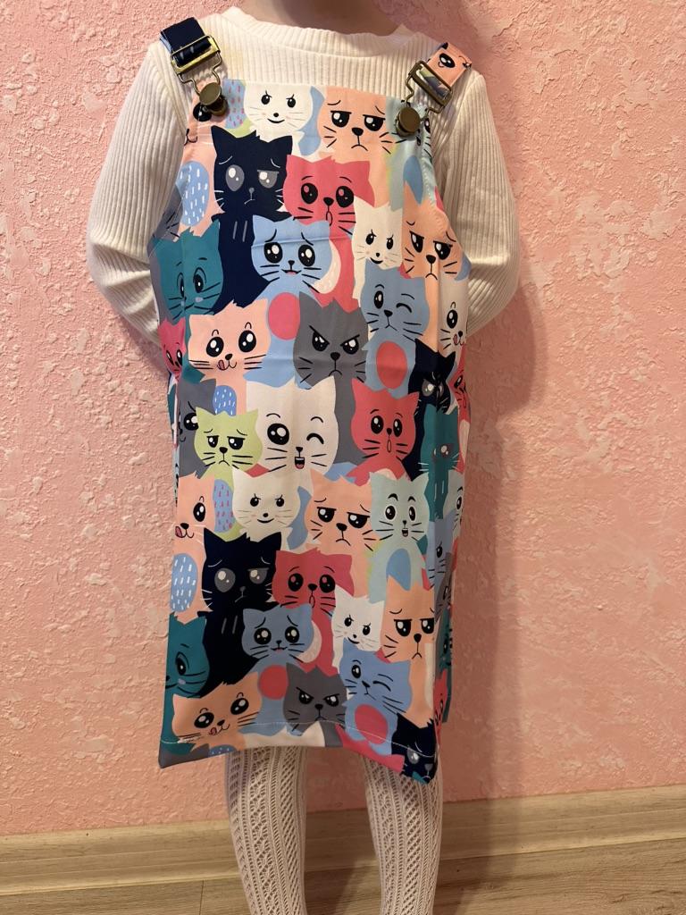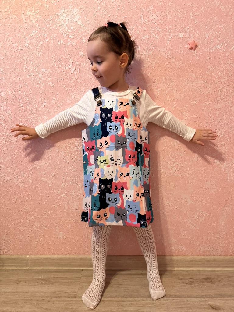 Girls' Autumn New Solid Color Pit Stripe Long Sleeve Top+Cute Contrast Cartoon Print Strap Dress Set — buy online with free worldwide shipping!
