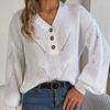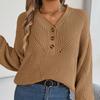 GMXIA Women's Fashion Casual Solid Color Autumn Winter Long Sleeve V-neck Loose Hollow-out Button Lantern Sleeve Pullover Sweater — buy online with free worldwide shipping!