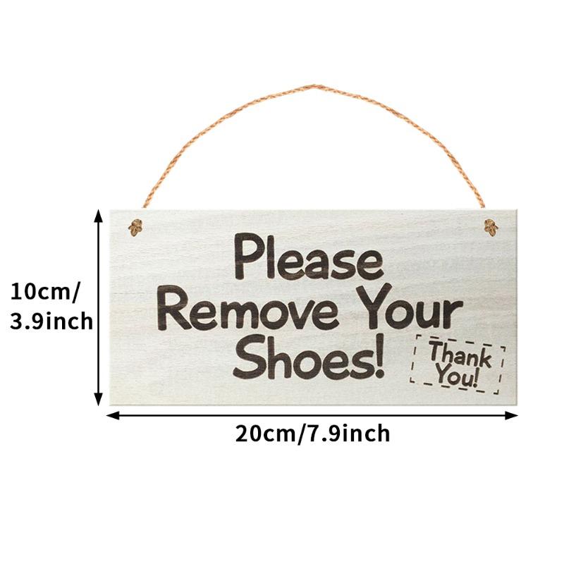 Front Door Welcome Sign Home Decor Please Remove Your Shoes Rustic Craft Wooden Square Porch Hanging with Rope Plaque Gift