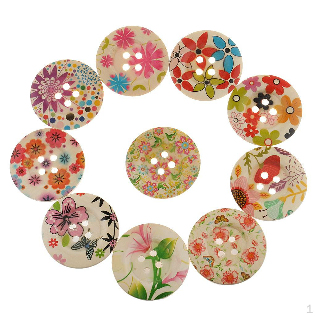 10 Pieces Multicolor Flower Floral Wooden Round Buttons 4-holes for DIY Sewing Crafts Decoration