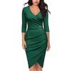 Women V-Neck Dress 3/4 Sleeves Pencil Midi Dress Solid Color Party Club Dress Elegant Office Business Dress — buy online with free worldwide shipping!