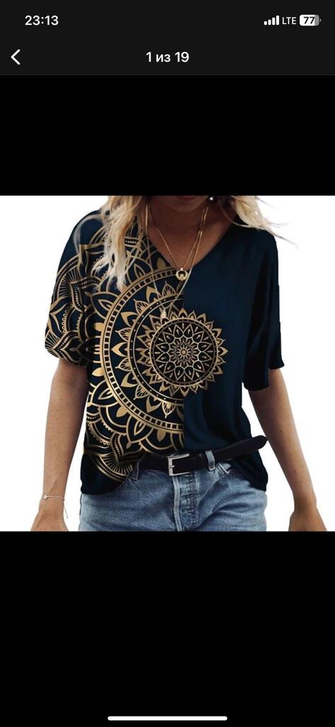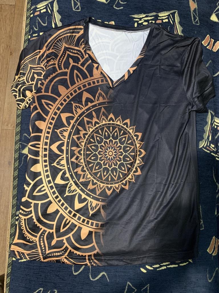 2023 Summer 5XL Women's T-Shirt Vintage Casual Black Fashion V Neck Pullover Short Sleeve Printed Loose Daily Tops Design Clothe — buy online with free worldwide shipping!