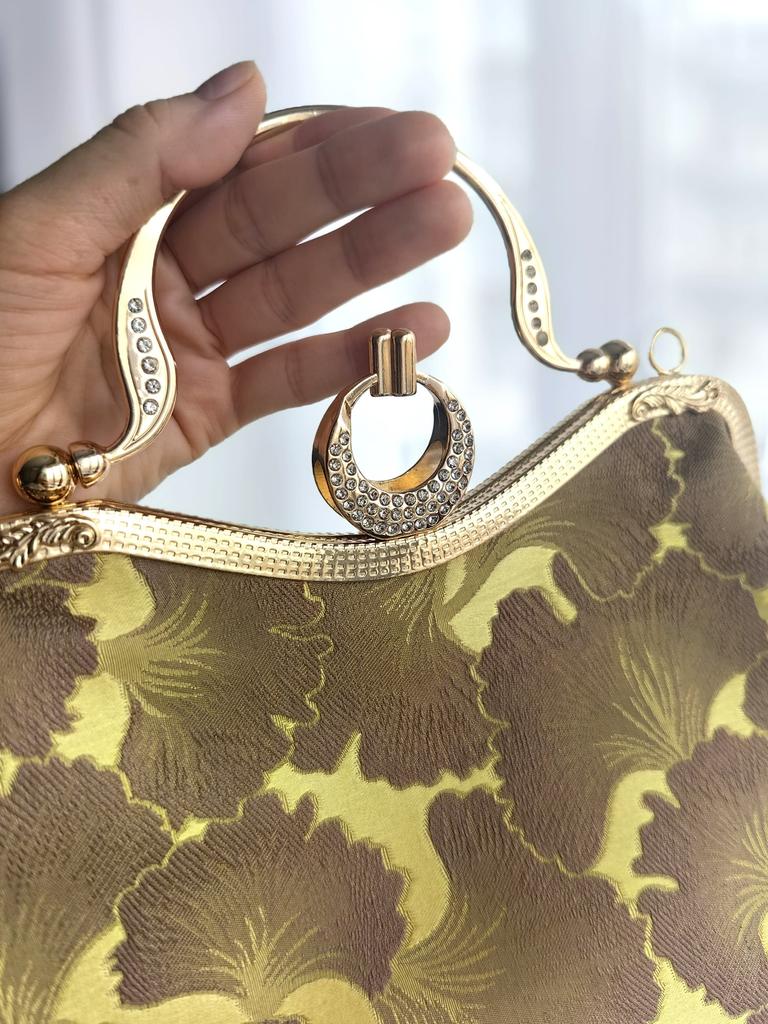 Floral Print Small Tote 2024 Designer Luxury Women Green Handbags Party Clutch Female Dinner Chain Shoulder Bags Messenger Bags