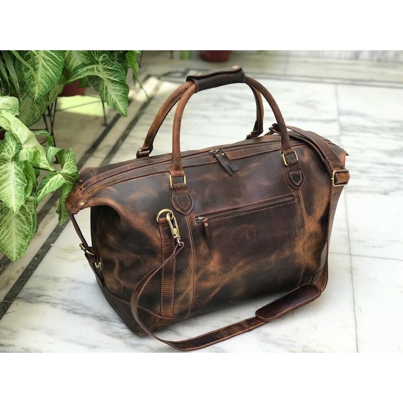 Introducing our Full Grain Leather Duffle Bag - the epitome of style, functionality, and personalization. Whether you're seeking a ruggedly sophisticated leather holdall for yourself or searching for a perfect personalized gift for him or an elegant overnight bag for her, this leather weekender bag will not disappoint. Designed to be your ideal carry-on baggage for air travel, this bag is a traveler's dream.