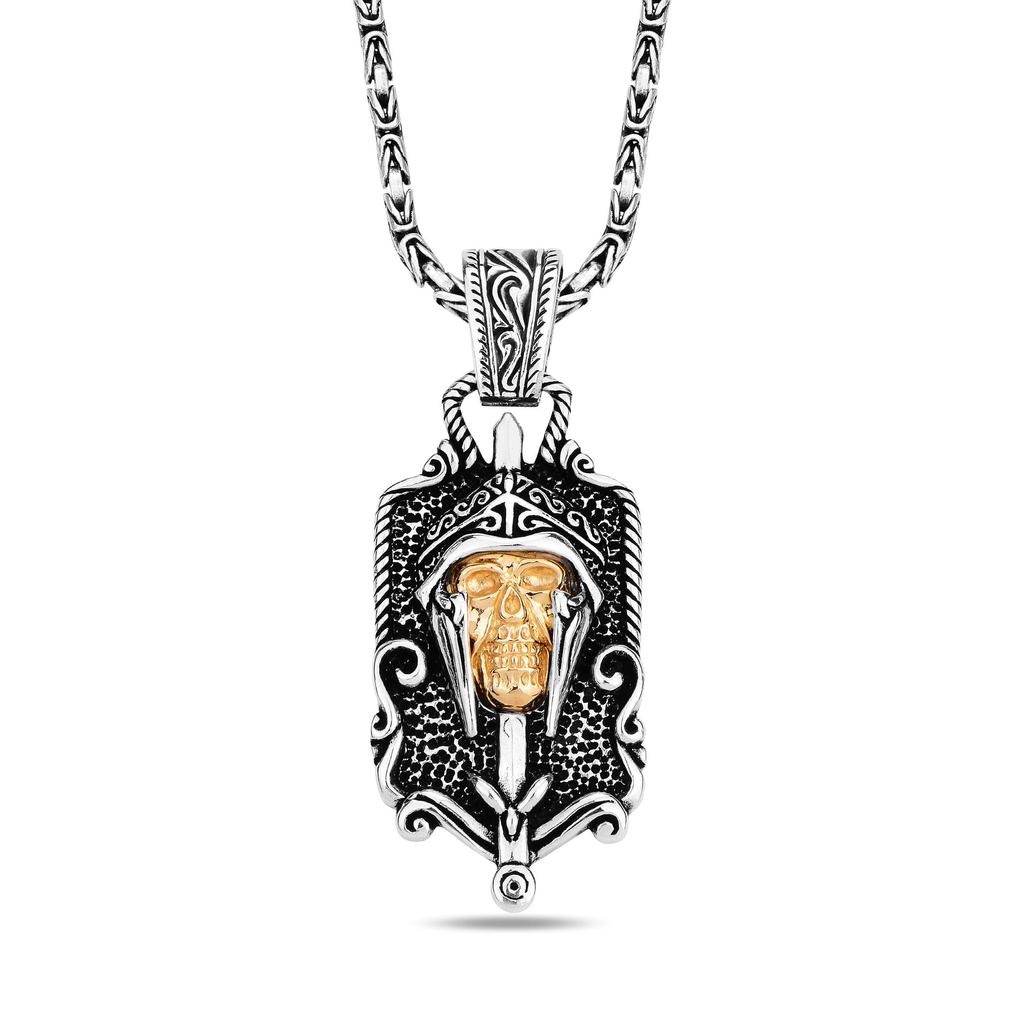 925K Gothic Skull Knight Necklace for Men, Vintage Punk Style, Black Sterling Silver, Byzantine Chain, Men's Fashion Jewelry Accessories — buy products online with free worldwide shipping!
