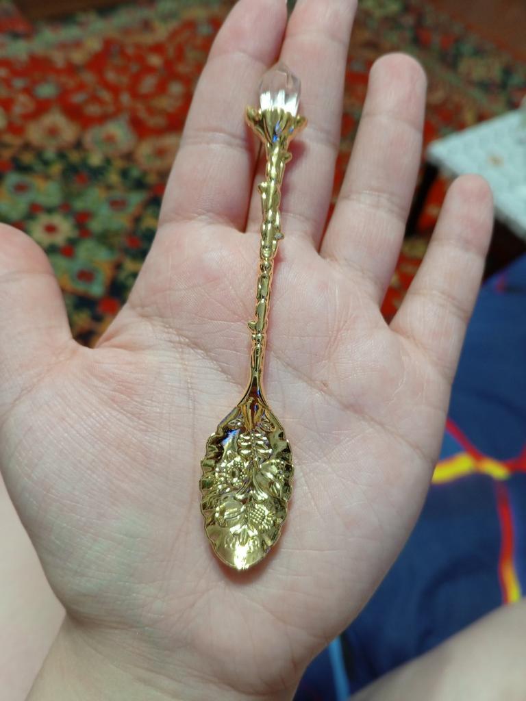 Vintage Flower Carving Tea Coffee Dessert Spoon Long Crystal Handle Dinnerware — buy online with free worldwide shipping!