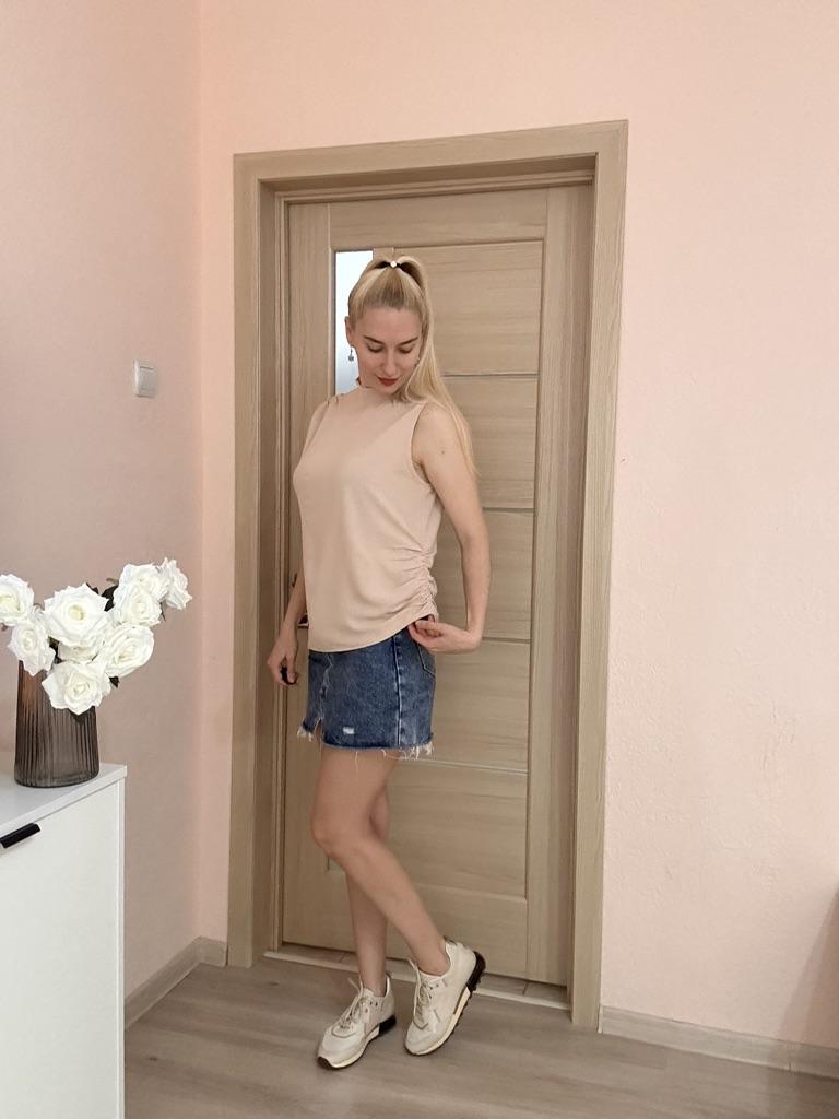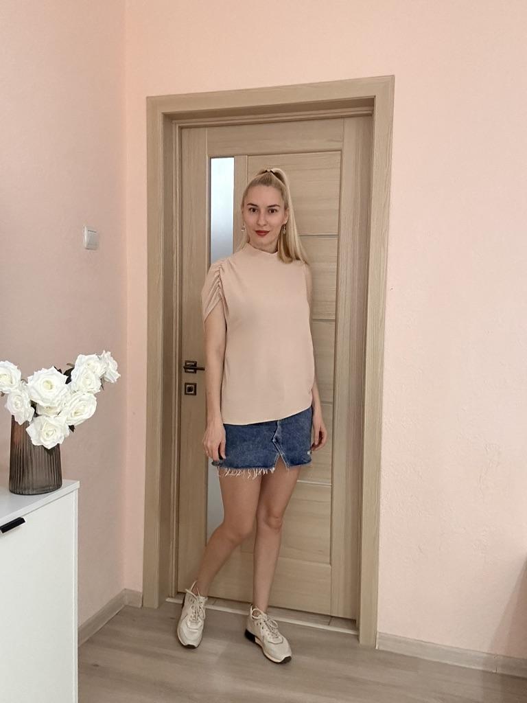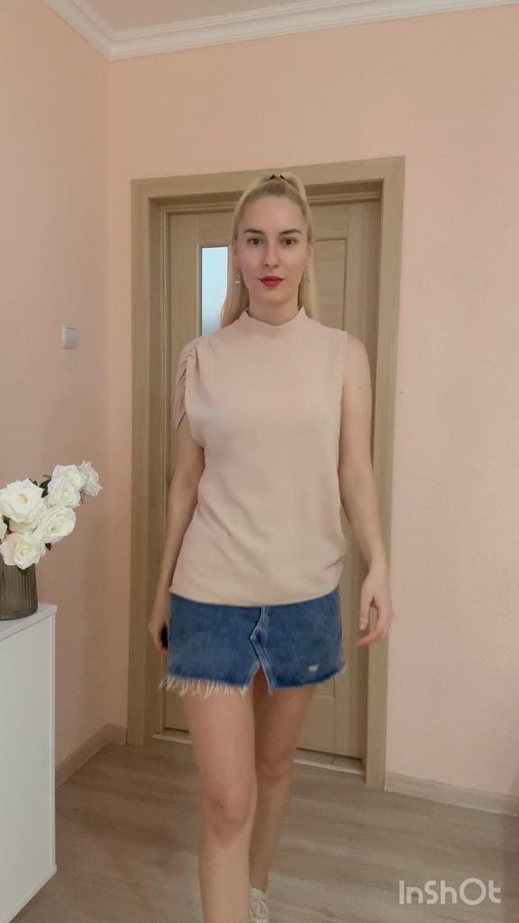 Beautiful top with a medium collar in an asymmetrical shape. 👌 Delivery time 🌞: 21 days to Germany. ♻️Scope of delivery: Included in delivery is a beautiful top in the appropriate size. The product is only available in this color. It is available in sizes from S to XL. I ordered the product in size S in apricot color and it fits me great and the color is exactly as shown. 🤗🤗🤗👍👕 I normally wear dress size 36 (S). I weigh 55kg and am 167cm tall. 👍👍💥💣. 🌞Quality ♻️:Beautiful soft fabric, pleasant on the skin. 👌The product has an asymmetrical shape, which I also really like. I find it extraordinary and beautiful!👌👌👌👌 The top is opaque, which I think is great. I particularly like the design, namely, medium turtleneck. I find it very seductive. Material composition: 100% polyester. I think the product 👕 is beautiful 🔝🔝🔝🔝🔝 ✳️Summary ✳️: A beautiful top 👕 that you have to order in your normal size. I am very happy to recommend the product.,5 stars. 🌟! Thank you Joom and the seller for this beauty🤗🤗🤗👗And thank you for an extra gift, for the hair band 💋💋