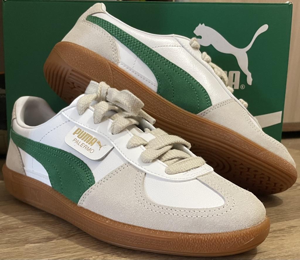 Puma Palermo Leather White Archive Green Gum Unisex Sneakers Vapor-Grey 396464-07 — buy online with free worldwide shipping!