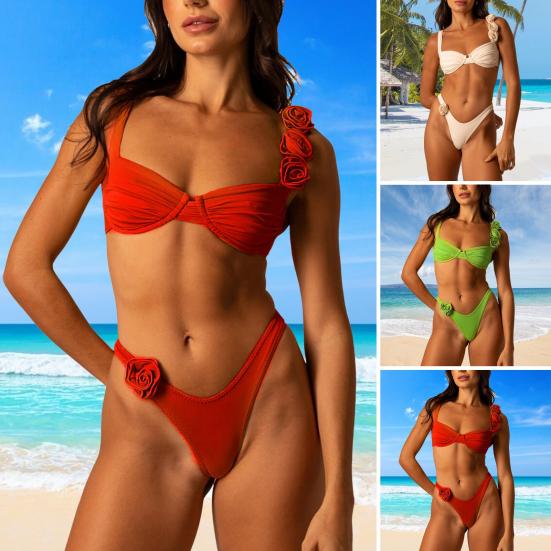The three-dimensional flower splicing adds a touch of fashion to the swimsuit, making it an eye-catching choice for your next tropical vacation.