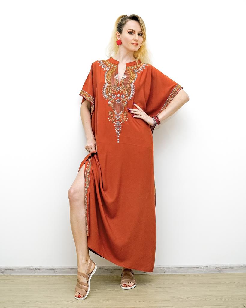 EDOLYNSA Embroidered Women's Kaftan Robe caftan Fashion Holiday Dress loose cozy bathing suit cover up lounge wear house dress Wrap Q1653 — buy online with free worldwide shipping!