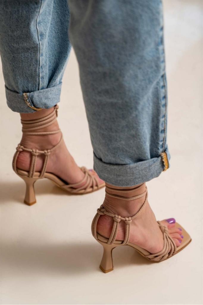 Women's Casual Sandals Skin Matte Ankle Tie Detail Heeled Shoes