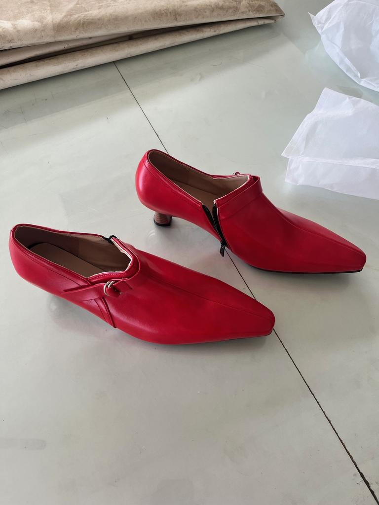 The shoe is very beautiful, good finishes, but the measurements do not match. The circumference of the foot is not what is stated in the product characteristics. It is indicated as 27.50 cm and is actually 25 cm... On the other hand, the color5 does not match. On the website it looks like vermilion, but in reality it's a red that turns to pink.