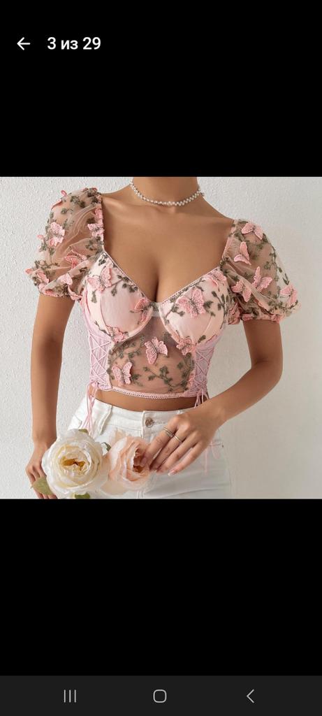 The blouse is transparent, stretches very well. The bodice does not hold the chest, it is unlikely to fit for a size larger than 1. The material for the sleeves is prickly. There is not a pleasant smell. Everything else corresponds to the description.