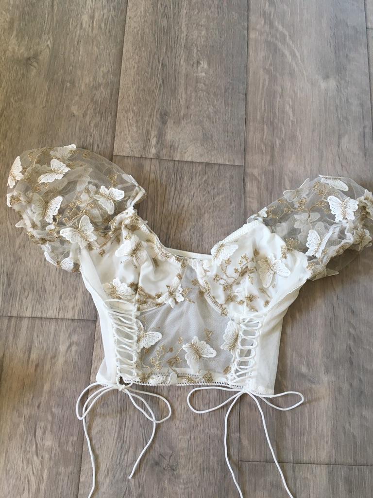 Casual V Neck Shirt Mesh Short Sleeve Crop Top Women Embroidered ButterflyT-shirt Backless Tank Top Slim Female Crop Top Fashion Tee Shirt Y2k — buy online with free worldwide shipping!