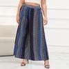 Summer Women's Pants Plus Size Wide Leg Pants Bohemian Style Striped Blue Elastic Waist Pants Seaside Vacation Beach Pants
