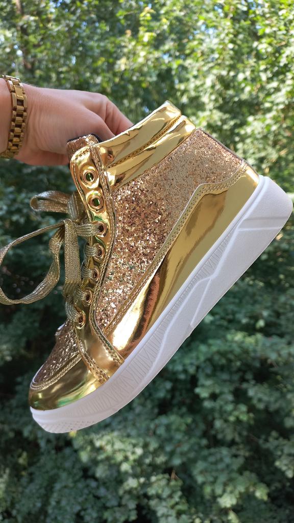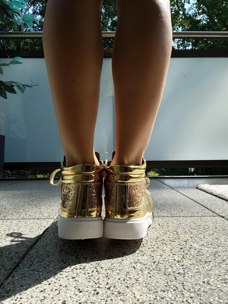Beautiful sequin platform sneakers, casual shoes👟! Delivery time: 🚚🚛✈️✈️✈️14 days to Germany. Scope of delivery: The delivery includes a pair of beautiful platform shoes for women in the appropriate size and color. There are shoes in 3 different colors to choose from . The product is available in sizes 38 to 48 . I ordered the shoes in size 38 in gold and they fit me perfectly. The shoes run small, so you have to order a size larger. The color of the shoes is exactly as shown.👍👍👍👌👌👌❗️ I normally wear shoes in size 37. My foot length is 23.8 cm. These 👟are ideal for me👍! They are very, very light and comfortable, seem to be well made and don't have an unpleasant chemical smell. I don't feel them on my feet at all.👌👌👌. TOP!!! I am really positively surprised by the quality of the shoes! I really like the design, especially the sequins 👍👍🔝, it looks extraordinary. 👍☝🏻 The product is ideal for everyday wear. I would even take it with me for hiking. ✅️❗️🔝🔝🔝. Summary: Very nice sneakers 👟, which you have to order a size larger. Thank you joom and the seller!😘😘🙏 5 stars 🌟 🌟 🌟🌟🌟