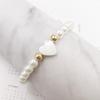 New Fashion Shell Heart Star Cross Charm Bracelet For Women Luxury Simulated Pearl Elastic Bracelet Pulseras Mujer Jewelry