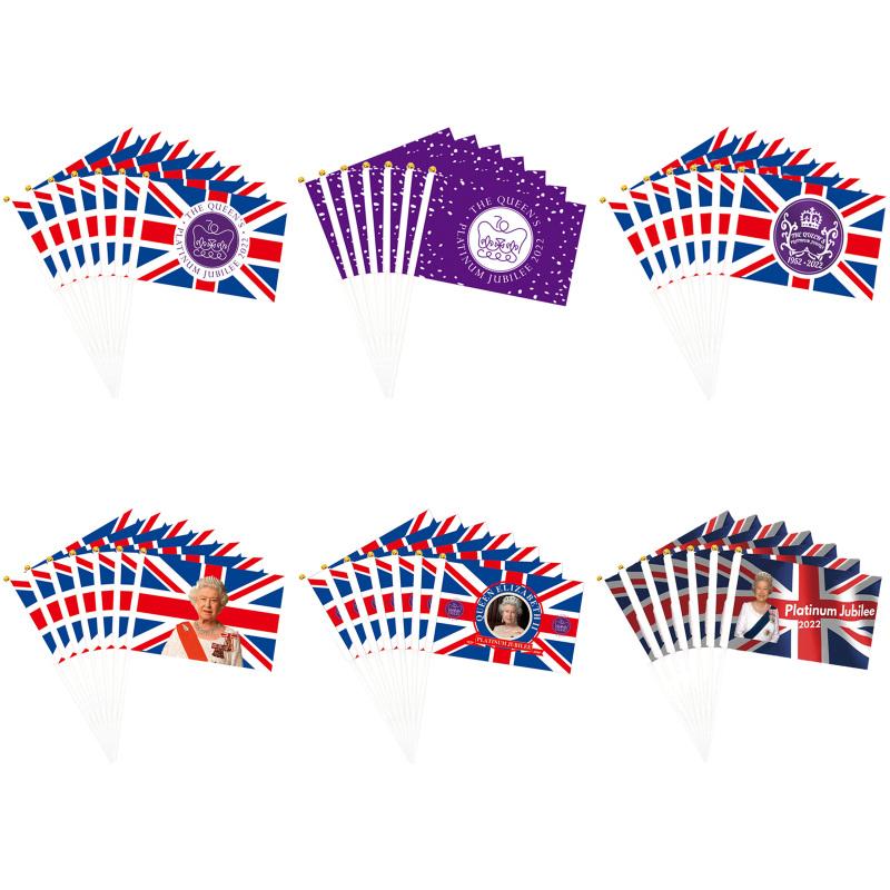 10pcs Queen Elizabeth II Platinums Jubilee Flags On Stick Queen Enthronement Union Jack Hand Held