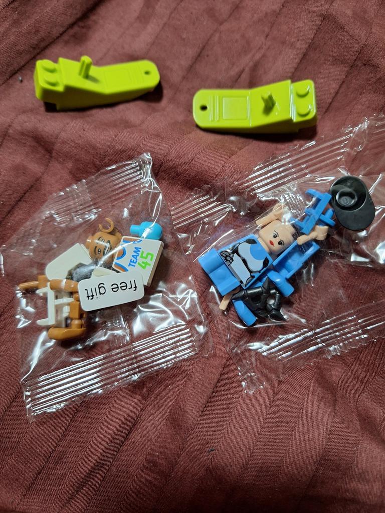 It's not very clear from the photo, but between blue and pink - light gray, that's the color of the part I received. 2 bags of approximately 250 grams arrived packed, about the same plate (of course, one-sided), there's a little problem with it, because it's bent and doesn't straighten very willingly, but over time, I think it will straighten out. Also, the seller put a minifigure and a disconnector as a gift with each bag of parts - it's nice. I recommend the seller and the product, thank you!
