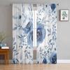 Flowers Retro Plants White Flowers Bedroom Transparent Sheer Curtains Holiday Decoration Window Voile Tulle Curtain
