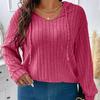 GMXIA Women's Fashion Casual Hooded Pit Stripe Fur T-shirt Solid Color Print Autumn Winter Long Sleeve V-Neck Loose Sweaters