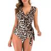 Wrap swim for women: Leopard swim with v neck design shows your curve perfectly and makes you sexy and flattering. Padded push up bra gives you support and better shape.