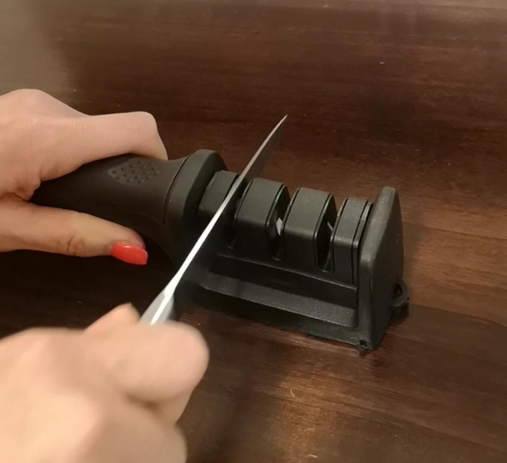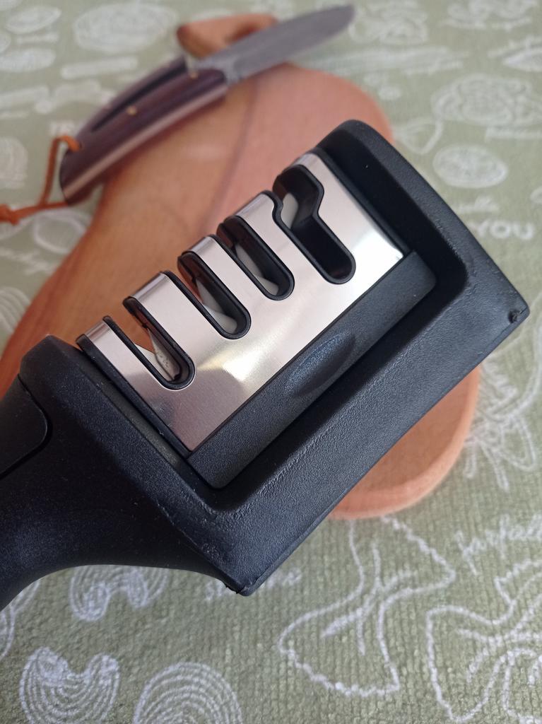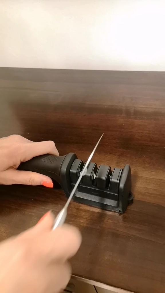 Device for sharpening knives and scissors from the TIHUAT KITCHENWARE store. 🥘 #03 This is not the first time I buy such a device. At first I tried it myself (very convenient stuff ☺️) now I recommend it to my loved ones 😉. The seller has different options for the sharpener, so you can choose the one that suits your hand, and you can also choose the color that suits you best I chose the black color and sharpened for 4 slots. The device is convenient and easy to use: There are 4 working slots (slots) on the sharpener: the first for scissors ✂️ and three slots for sharpening knives: coarse (rough) sharpening, ruler (intermediate) and sharp (fine). To sharpen, insert the knife into the slot and make a movement towards you and so on several times until the result satisfies us (all movements in the same direction). After sharpening, the knife must be carefully (!) washed with warm water with the addition of dishwashing detergent. The sharpener cannot be washed in a dishwasher. The device has a comfortable handle and a non-slip bottom. And there is also a hole for hanging on a hook 😊 A wonderful kitchen gadget 🔪🍠🧅. I recommend 😉 🛒 I am adding enough photos + videos to make it easier for you to decide 📸🎥 If the information was useful, put it as a favorite ❤️😘 I received the product in 21 days by "New Mail" for free (!) 🚀🚀🚀 The track was tracked completely. The arrival at the point of issue was announced by sms 📲. Packaging: bubble bag and individual packaging. Everything arrived intact. Goods without defects. Happy shopping and fast deliveries to everyone 🛍️☺️🚀🌷