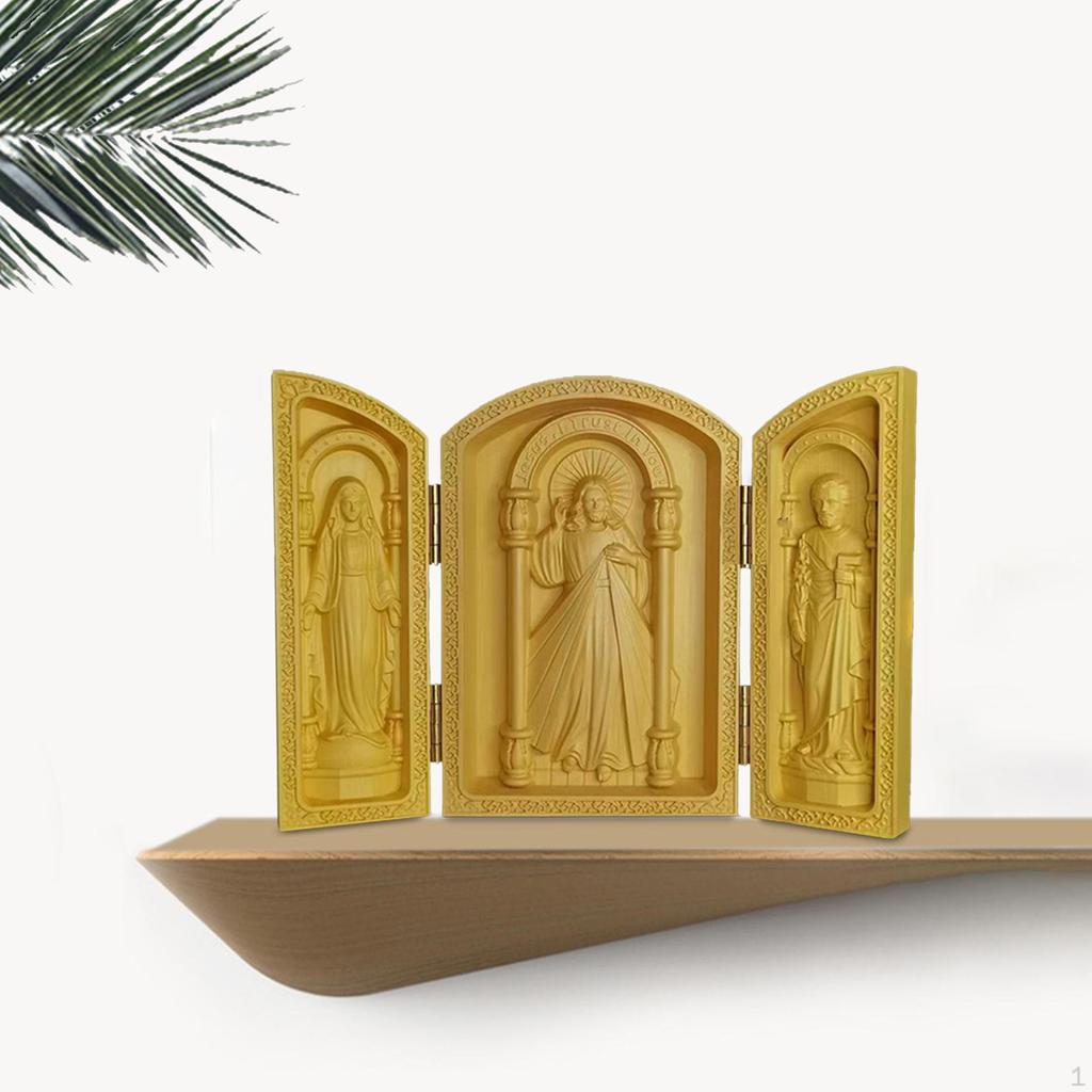 Wood Carving Ornament Holy Figurine Handcarved Catholic Decorative Three Open Boxes for Gift