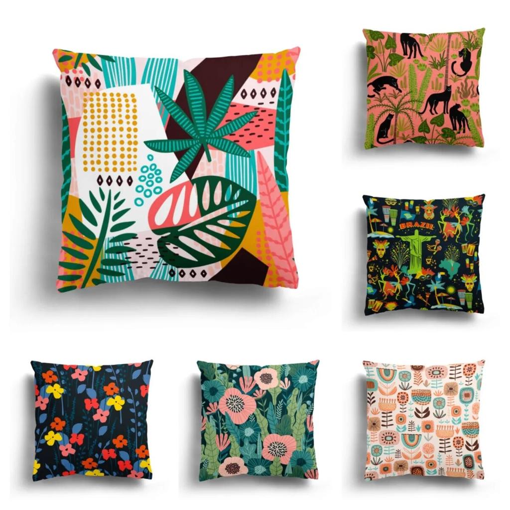 Fashion Pillowcase Bedroom Cushion Cover Home Decoration Sofa Green Plant Colorful Leaf Flower Series