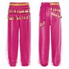 Kids Girls Belly Dance Performance Pants Sequined Dots Chiffon Trousers Bloomers with Tassels Waist Chain Hip Scarf
