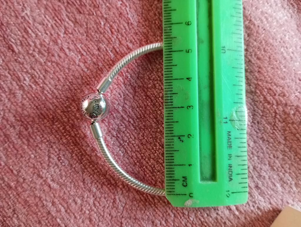 Matches the description 100% - it is really good silver, we've tested! Heavy bracelet, shines incredibely, 17 cm is perfect for hand 14-15.5cm. But holds the shape of the bracelet - doesn't deform easily. The locker has 2 different designes on the sides. But it looks very gorgeus! Thanks to the Seller for such a pleasure to have it!