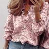 Fashion Woman Temperament Long Sleeve Ruffle Blouse Solid Colour Comfort Shirt