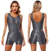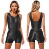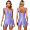 Womens Glossy Swimsuit Two Piece Swimwear Sleeveless Bodysuit Mid Waist Shorts Yoga Fitness Swimming Suit