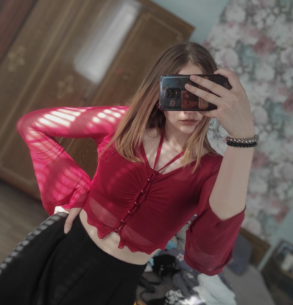 cool blouse, the fabric is extremely pleasant, the top has pads already sewn in, size M fits perfectly for parameters 86/64, a bit short, but that's okay