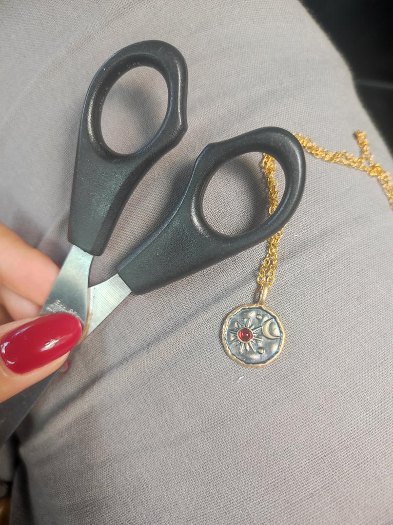 Подвеска отличается цветом относительно самой цепочки и фото. Красным элемент на подвеске поврежден.