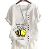 Women's Cotton Casual Top with 7 Unique Print Patterns, Round Neck, Short Sleeves, Button Embellishments
