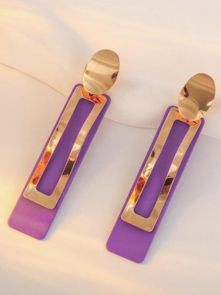 French Fashion New Light Luxury Style Earrings Niche Personality Spray Painted Colored Earrings Geometric Rectangular Metal Earrings