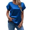 Women's T-Shirt Summer Elegant Solid Round Neck Rolled Short Sleeve Satin Silk Blouse Tops — buy online with free worldwide shipping!