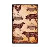 Butcher Shop Vintage Metal Sign Kitchen Poster Beef Pig Duck Meat Cuts Collection Guide Retro Wall Plaque Painting Craft 20x30cm